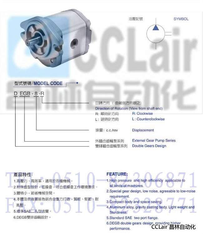 EGB- 6,EGB- 8,EGB-11,EGB-14,EGB-16,EGB-19,DEGB-22,DEGB-26,低噪音外嚙合齒輪泵