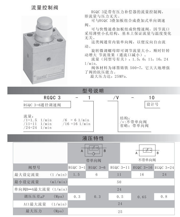 詳細(xì)信息 RGQC3-1-10,RGQC3-6-10,RGQC3-11-10,RGQC3-16-10,RGQC3-24-10,流量控制閥