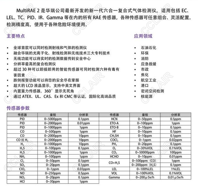 詳細(xì)信息 PGM-62X8,MultiRAE2 六合一有毒有害氣體檢測儀