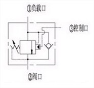 此閥允許液流從②到①自由流動(dòng),同時(shí)阻止其反向流動(dòng),若先導(dǎo) 口③壓力按比例增加,則①到②流量也按比例增加。