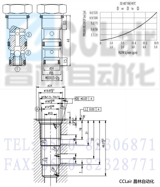 此閥使用時,允許①口和③口中壓力較高的油口和②口接通,同時封閉壓力較低的油口。