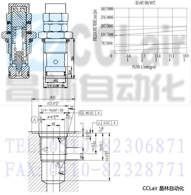 當(dāng)P口壓力未達(dá)到彈簧設(shè)定壓力的85%時(shí),P到T不通超過(guò)85%并繼續(xù)升高時(shí),P到T開始溢流,直到彈簧的最高設(shè)定壓力。