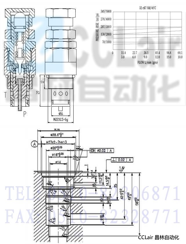 當(dāng)P口壓力未達(dá)到彈簧設(shè)定壓力的90%時(shí),P到T不通超過90%并繼續(xù)升高時(shí),P到T開始溢流,直到彈簧的最高設(shè)定壓力。