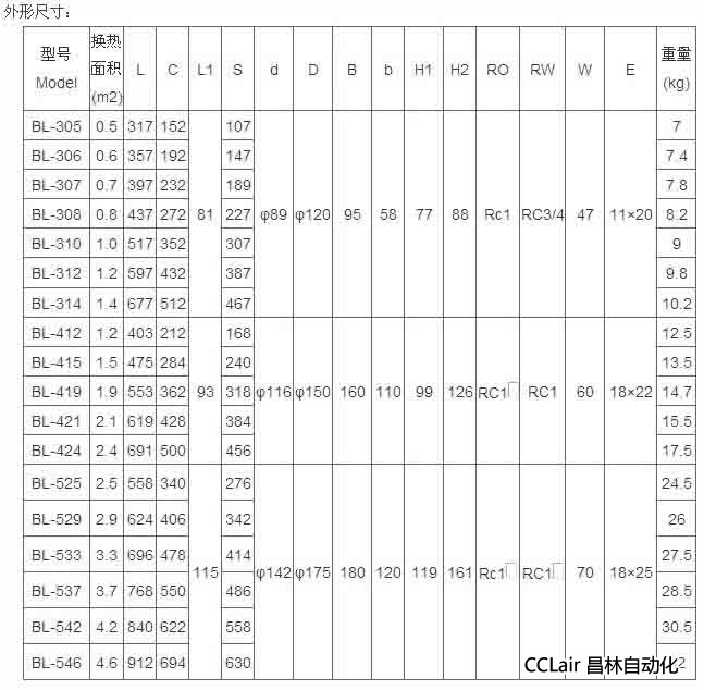 詳細(xì)信息 BL-305,BL-306,BL-307,BL-308,BL-310,BL-312,BL-314,BL-412,BL-546,冷卻器
