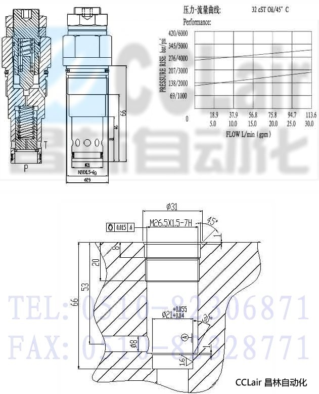 當(dāng)P口壓力未達到彈簧設(shè)定壓力的90%時,P到T不通超過90%并繼續(xù)升高時,P到T開始溢流,直到彈簧的最高設(shè)定壓力。