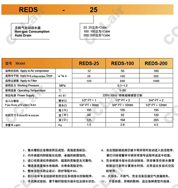 詳細(xì)信息 REDS-25,REDS-100,REDS-200,無耗氣自動(dòng)排水器,CCLair