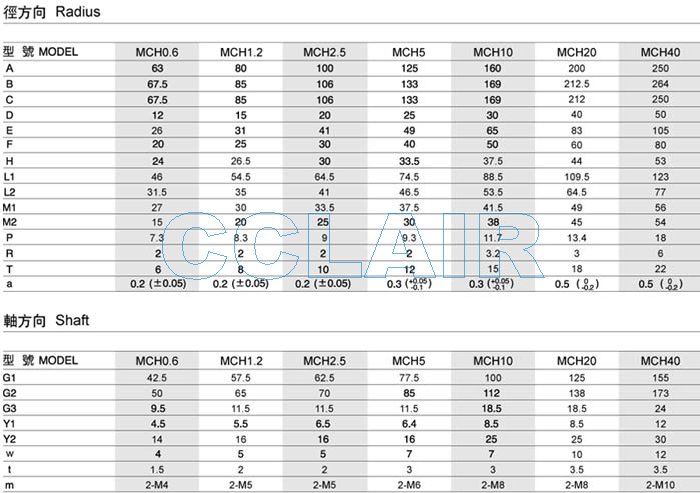 MCH0.6,MCH1.2,MCH2.5,MCH5,MCH10,MCH20,MCH40,電磁式離合器