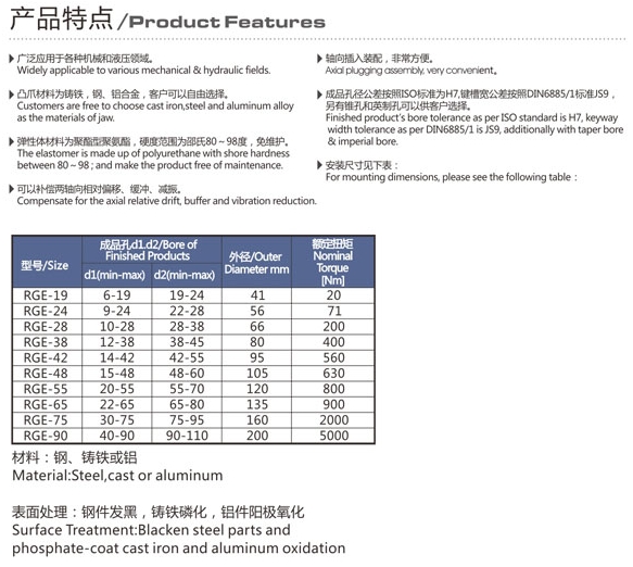 RGE-19,RGE-24,RGE-28,RGE-38,RGE-42,RGE-48,RGE-55,RGE-65,梅花形彈性爪式聯(lián)軸器