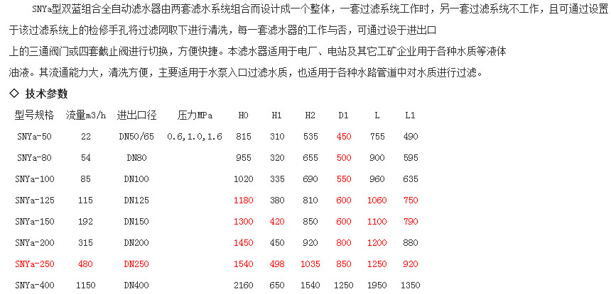 SNYa-50,SNYa-80,SNYa-100,SNYa-125,SNYa-150,SNYa-200,SNYa-250,SNYa-400,雙藍(lán)組合全自動(dòng)濾水器