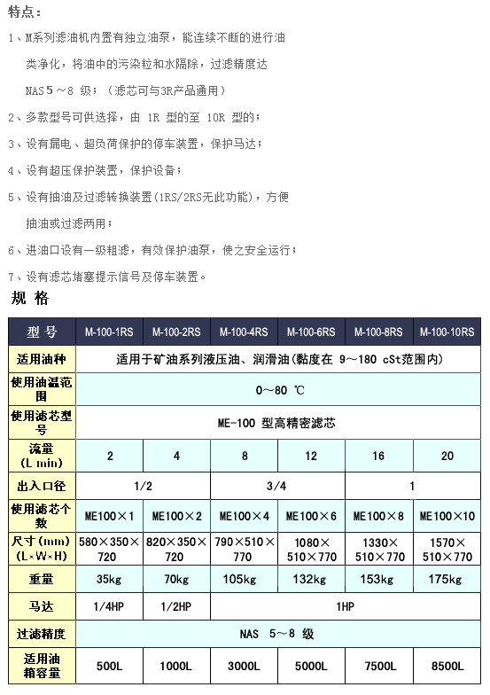 詳細(xì)信息 M-100-1RS,M-100-2RS,M-100-4RS,M-100-6RS,M-100-8RS,M-100-10RS,精密濾油小車