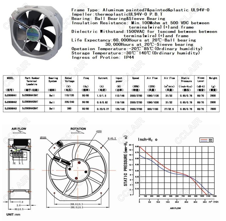 詳細信息 SJ2808HA1,SJ2808HA2,SJ2808HA3,SANJU 鐵葉風機