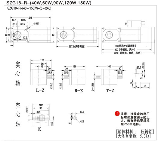 SZG18-R-40W,SZG18-R-60W,SZG18-R-90W,SZG18-R-120W,SZG18-R-150W,雙曲面齒輪減速機(jī)
