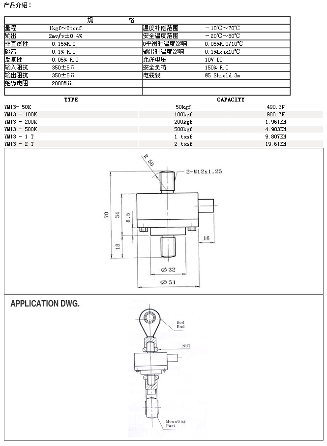 詳細信息 YM13-50K,YM13-100K,YM13-200K,YM13-500K,YM13-1T,YM13-2T,setech稱重傳感器