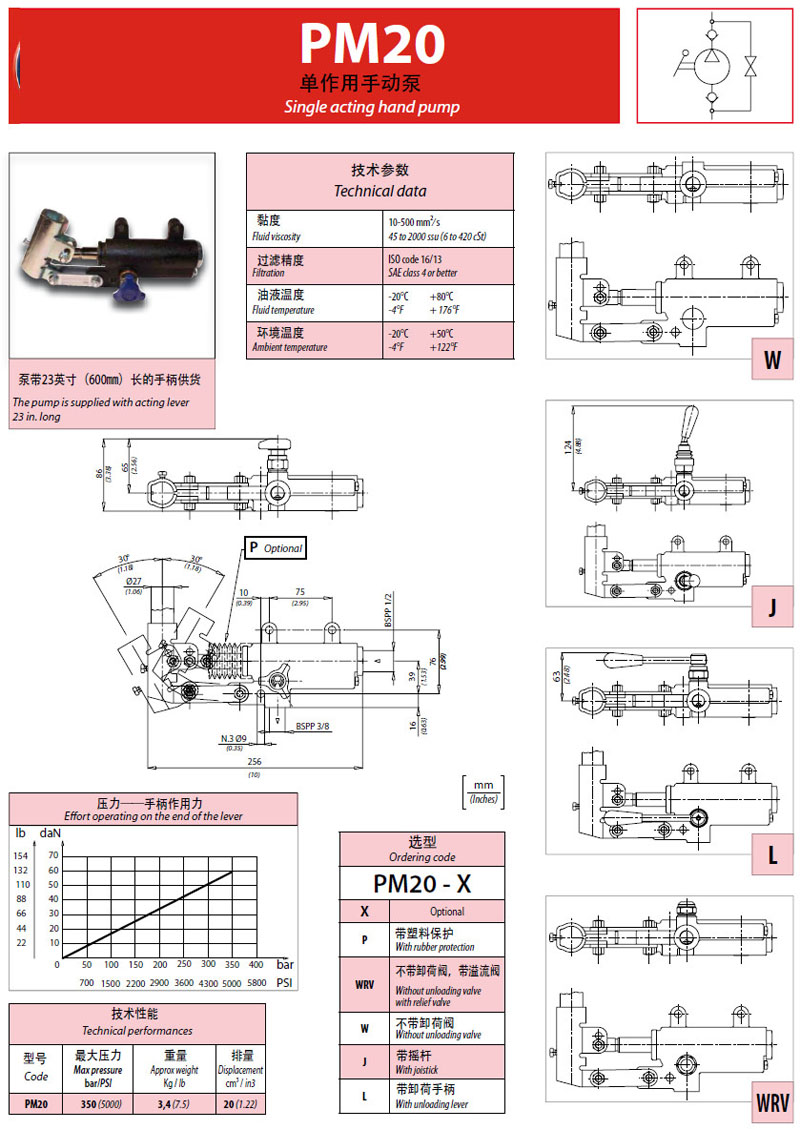 PM20-P,PM20-WRV,PM20-W,PM20-J,PM20-L,單作用手動(dòng)泵