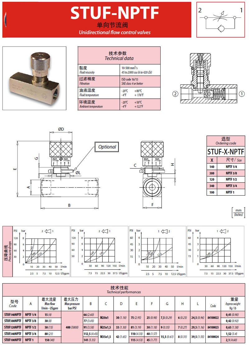 STUF140NPTF,STUF380NPTF,STUF120NPTF,STUF340NPTF,STUF100NPTF,單向節(jié)流閥