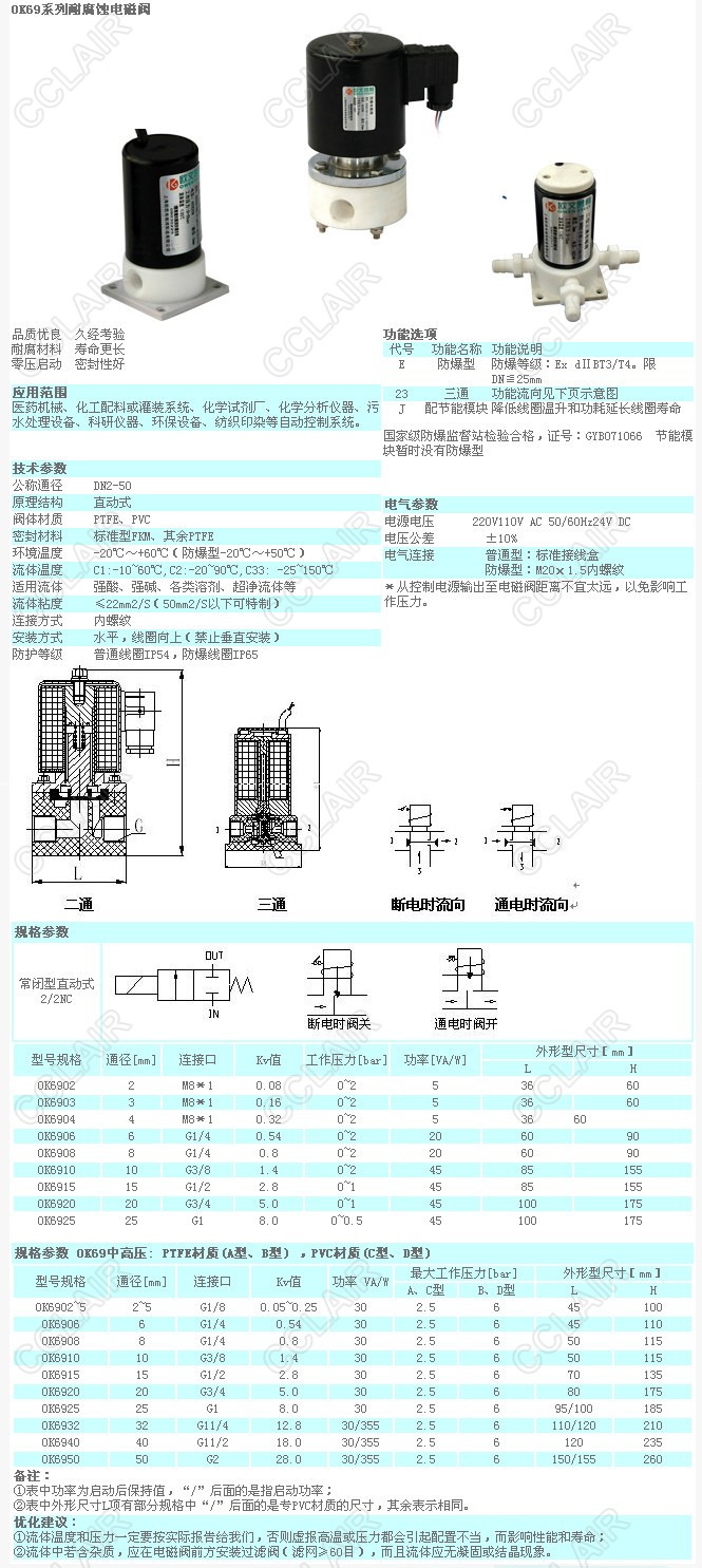 OK6902,OK6903,OK6908,OK6910,OK6915,OK6920,OK6925,OK6932,OK6950,OK69,耐腐蝕電磁閥