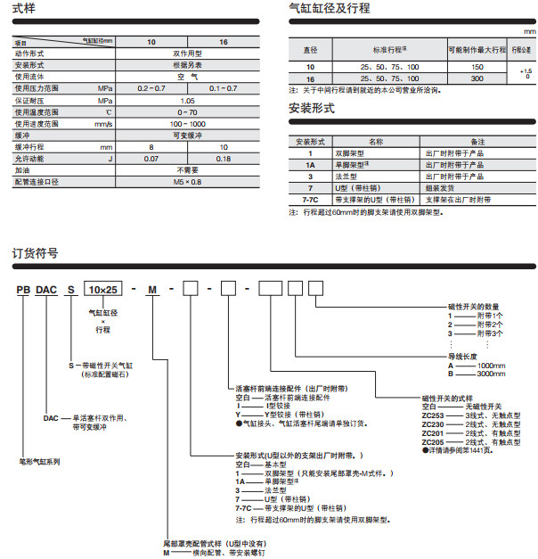 PBDACS10*25,PBDACS10*50,PBDACS10*75,PBDACS10*100,PBDACS16*25,筆形氣缸--帶可變緩沖的氣缸