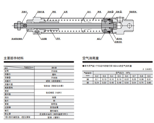 SA20*25,SA20*50,SA20*75,SA32*25,SA32*50,SA32*75,SA32*100,SAJ20*25,SAJ20*50,苗條型氣缸