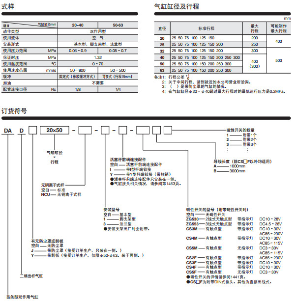 DAD20*25,DAD20*50,DAD20*75,DAD20*100,DAD20*25,DAD20*150,DAD25*25,DAD25*50,苗條型二端出桿氣缸