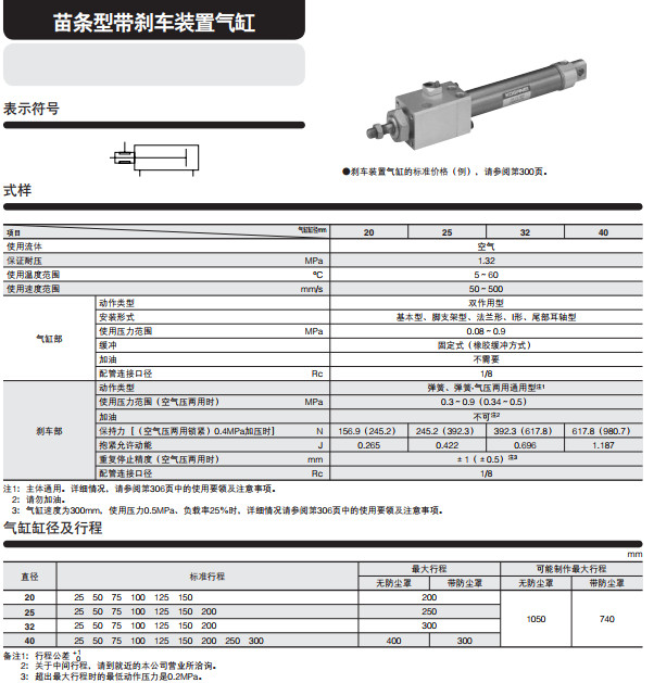 DAR20*25,DAR20*50,DAR20*75,DAR20*100,DAR20*125,DAR20*150,DAR25*25,苗條型帶剎車(chē)裝置氣缸