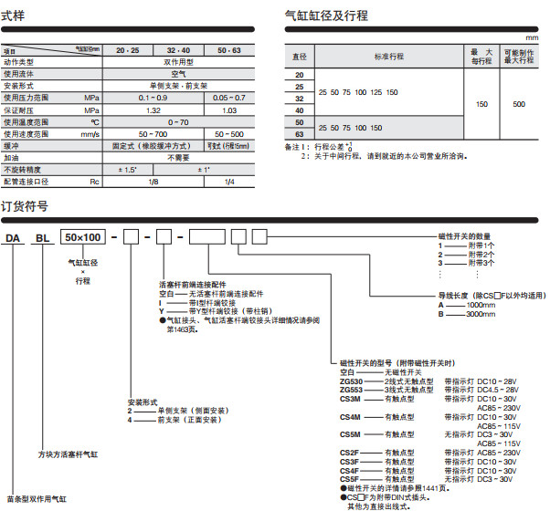 DABL20*25,DABL20*50,DABL20*75,DABL20*100,DABL20*125,DABL20*150,苗條型方塊方活塞桿氣缸