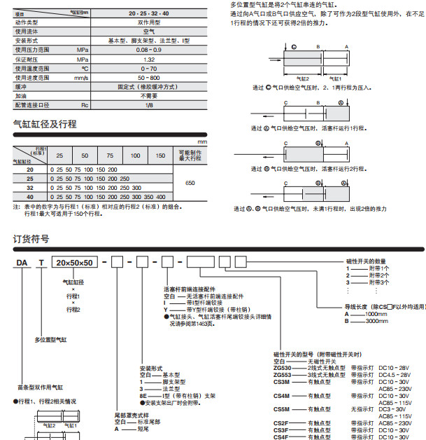 DAT20*25*0,DAT20*25*25,DAT20*25*50,DAT20*25*75,DAT20*25*100,DAT20*25*150,苗條型多位置型氣缸