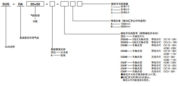 SUS-DA20*25,SUS-DA20*50,SUS-DA20*75,SUS-DA20*100,SUS-DA20*125,苗條型氣缸--SUS型氣缸