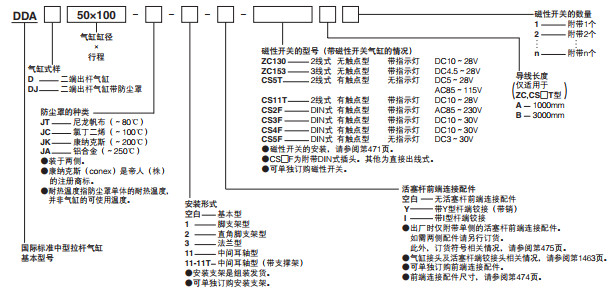 DDAD32*50,DDAD32*75,DDAD32*100,DDAD32*150,DDAD32*200,DDAD32*250,國際標(biāo)準(zhǔn)拉桿中型二端出桿氣缸