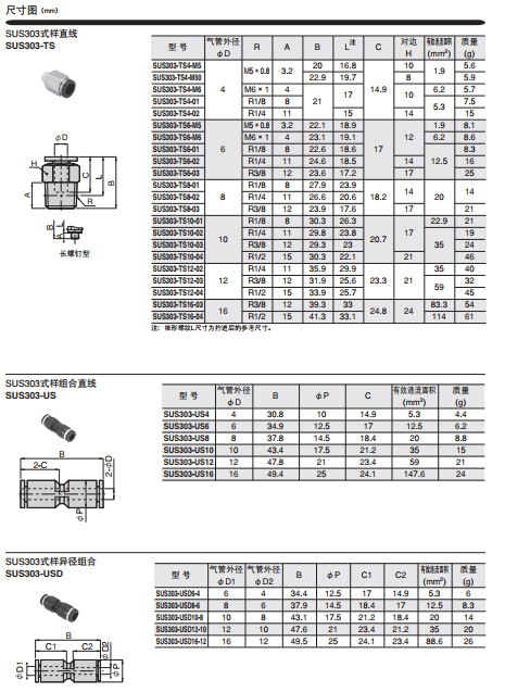 SUS303-TS4-M5,SUS303-TS4-M50,SUS303-TS4-M6,SUS303-TS4-01,快速接頭標(biāo)準(zhǔn)型 不銹鋼材