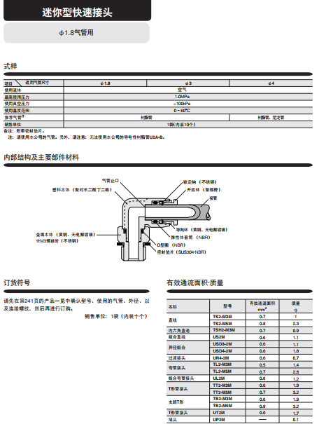 TS2-M3M,TS2-M5M,TSH2-M3M,US2M,USD3-2M,USD4-2M,UR4-2M,TL2-M3M,TL2-M5M,快速接頭 φ1.8迷你型
