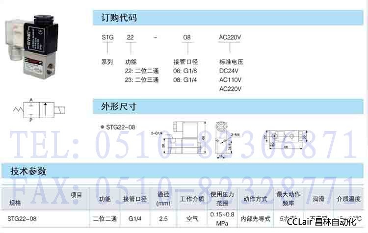 產(chǎn)品: 瀏覽次數(shù):642STG22-08,二位二通電磁閥