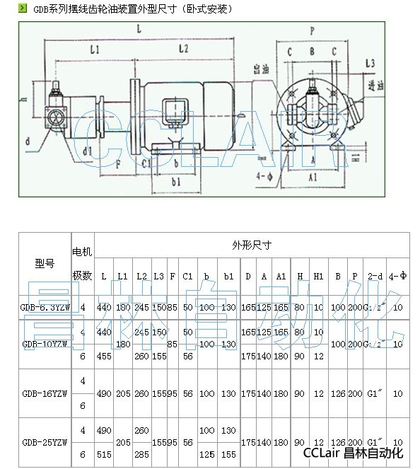 詳細(xì)信息 GDB-6.3YZW,GDB-10YZW,GDB-16YZW,GDB-25YZW,擺線齒輪油裝置(臥式安裝)