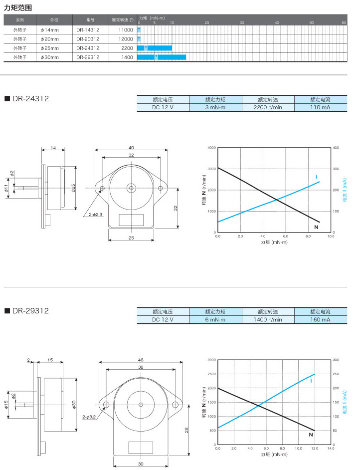 詳細信息 DR-14312,DR-20312,DR-24312,DR-29312,外轉(zhuǎn)子直流無刷馬達