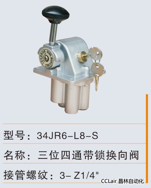 產(chǎn)品: 瀏覽次數(shù):93334JR6-L8-S,三位四通帶鎖換向閥