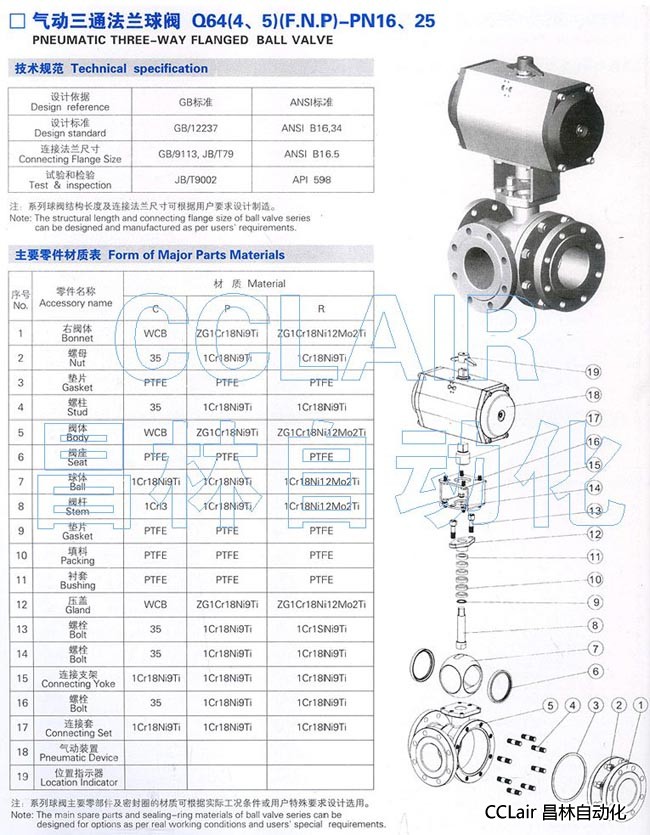Q644F-16,Q645F-16,Q644F-25,Q645F-25,氣動三通法蘭球閥