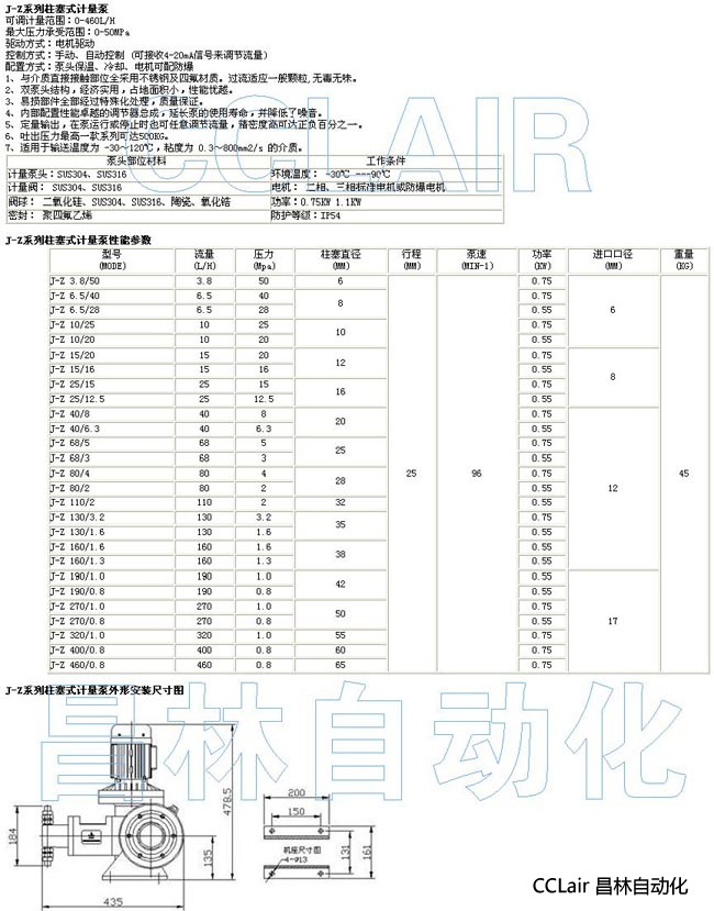 J-Z 3.8/50,J-Z 6.5/40,J-Z 6.5/28,J-Z 10/25,柱塞式計量泵