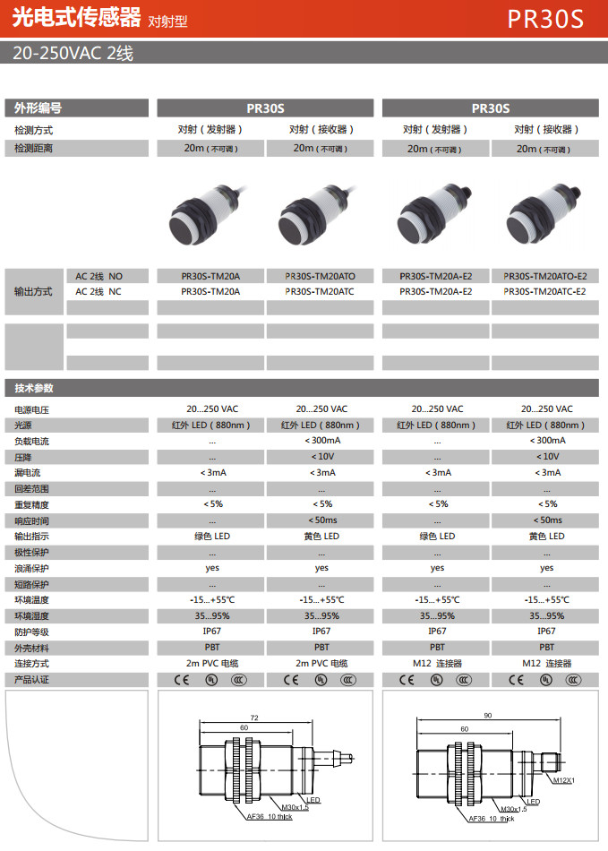 詳細信息 PR30S-TM20A,PR30S-TM20ATO,PR30S-TM20ATC,PR30S-TM20A-E2,PR30S-TM20ATO-E2,PR30S-TM20ATC-E2,光電式傳感器