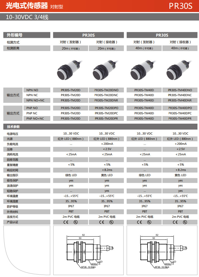 詳細(xì)信息 PR30S-TM20D,PR30S-TM20DNO,PR30S-TM40D,PR30S-TM20DNC,PR30S-TM20DNR,PR30S-TM20DPO,光電式傳感器