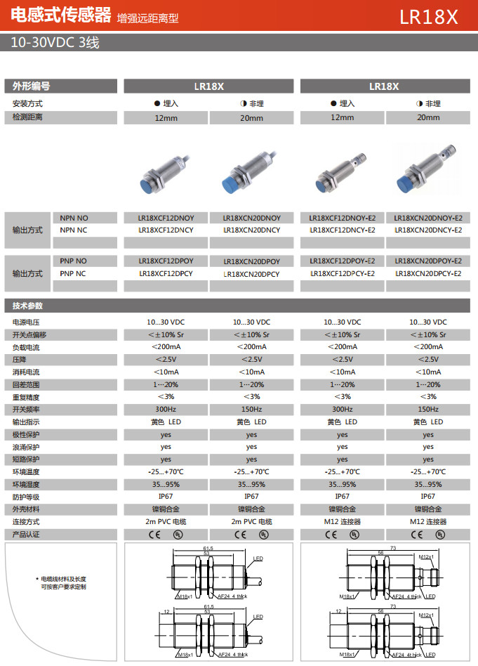 LR18XCF12DNOY,LR18XCF12DNCY,LR18XCN20DNOY,LR18XCN20DNCY,LR18XCF12DPOY-E2,電感式傳感器