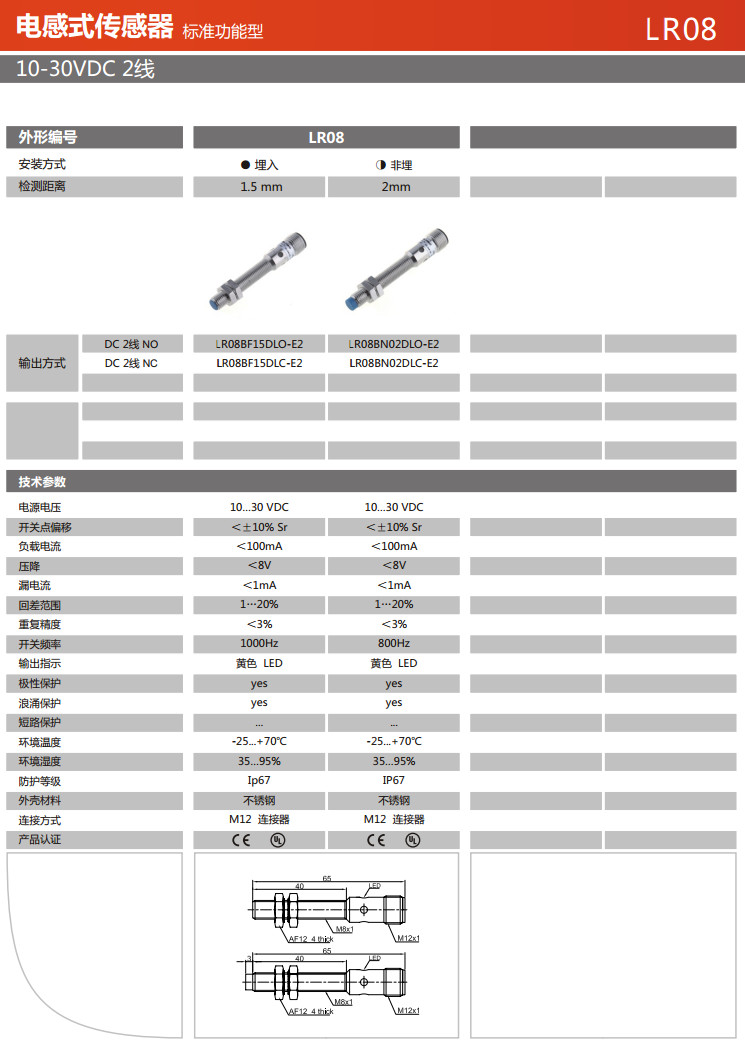 LR08BF15DLO-E2,LR08BF15DLC-E2,LR08BN02DLO-E2,LR08BN02DLC-E2,電感式傳感器