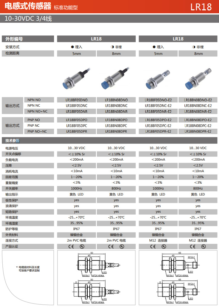 詳細(xì)信息 LR18BF05DNO,LR18BF05DNC,LR18BF05DNR,LR18BN08DNO,LR18BN08DNC,LR18BN08DNR,電感式傳感器