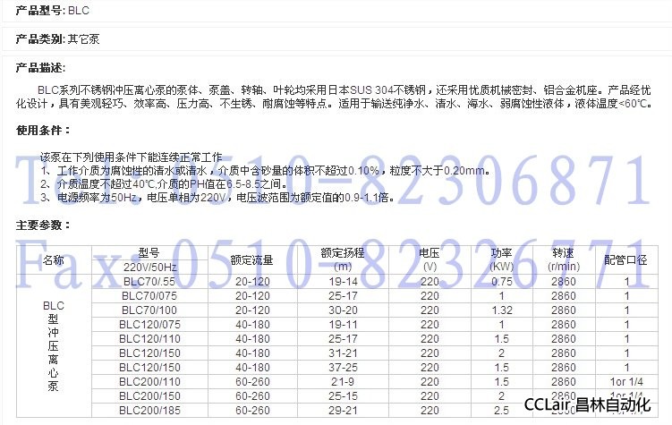 詳細(xì)信息 BLC200/110,BLC200/150,BLC200/185,不銹鋼沖壓離心泵