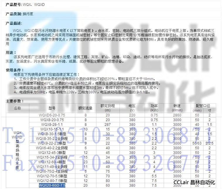 詳細(xì)信息 WQX10-15-1.1,WQXB-30-1.5,WQX8-35-2.2,污水污物潛水泵,