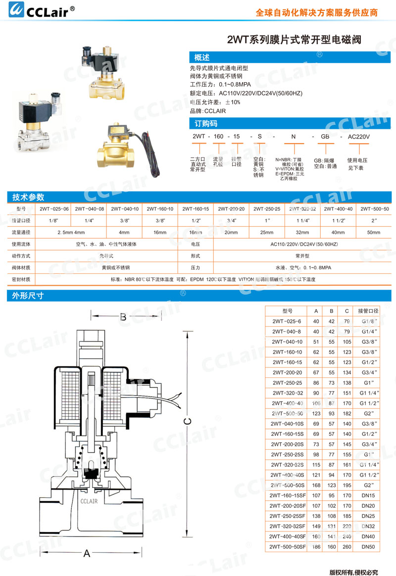 2WT025-06,ZWT040-10S,2WT160-15,2WT200-20,2WT250-25,ZWT320-32,2WT-160-15SF,膜片式常開型電磁閥
