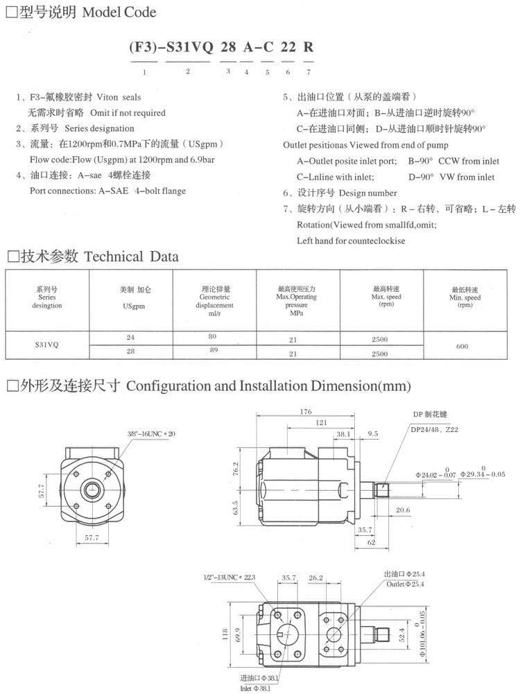 詳細(xì)信息 S31VQ28A-C22R,S31VQ28A-A22R,S31VQ24A-B22L,S31VQ24A-D22L,葉片泵