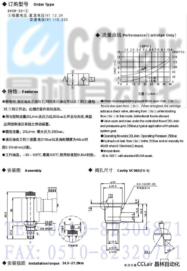 SV08-23,雙向常開電磁閥
