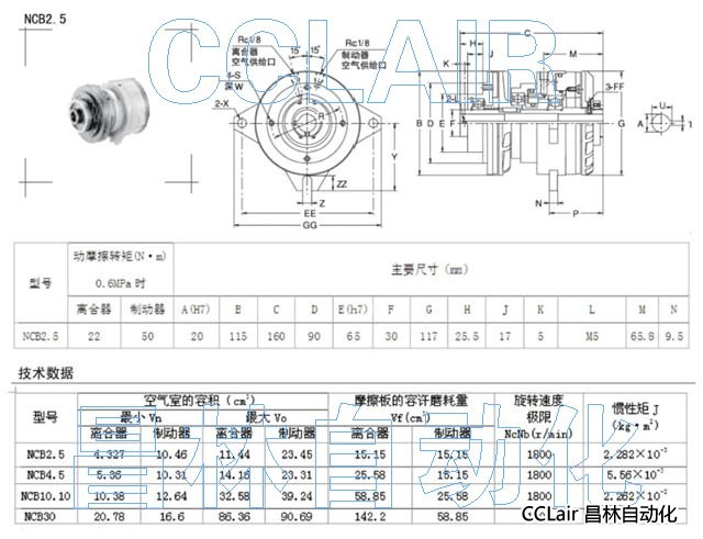 詳細(xì)信息 NCB2.5,氣動(dòng)串聯(lián)型離合制動(dòng)器