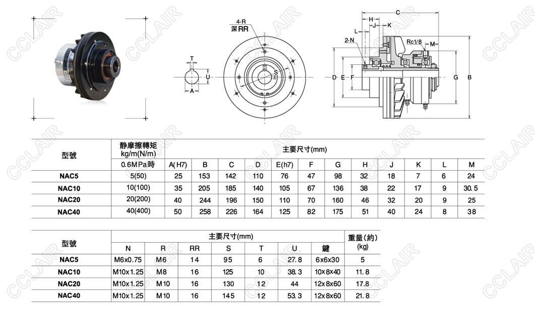 NAC5,NAC10,NAC20,NAC40,STEKI NAC型空壓通軸式離合器