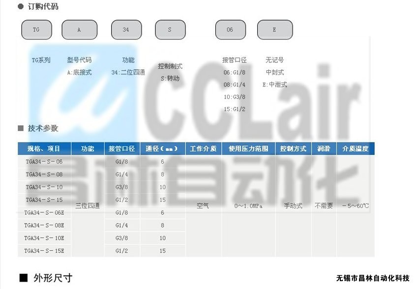 TGA34-S-06,TGA34-S-08,TGA34-S-10,TGA34-S-15,STNC三位四通底接式轉(zhuǎn)閥