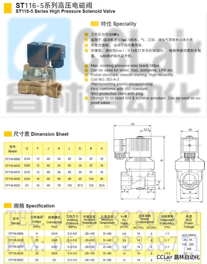 ST116-5008,ST116-5010,ST116-5015,ST116-5020,ST116-5025,高壓電磁閥